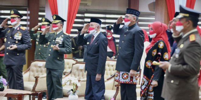 BANDA ACEH – Gubernur Aceh Nova Iriansyah bersama Forum Koordinasi Pimpinan Daerah (Forkopimda) Aceh mengikuti Upacara Peringatan Detik-Detik Proklamasi Kemerdekaan Republik Indonesia yang ke 76. Selasa, 17 Agustus 2021.