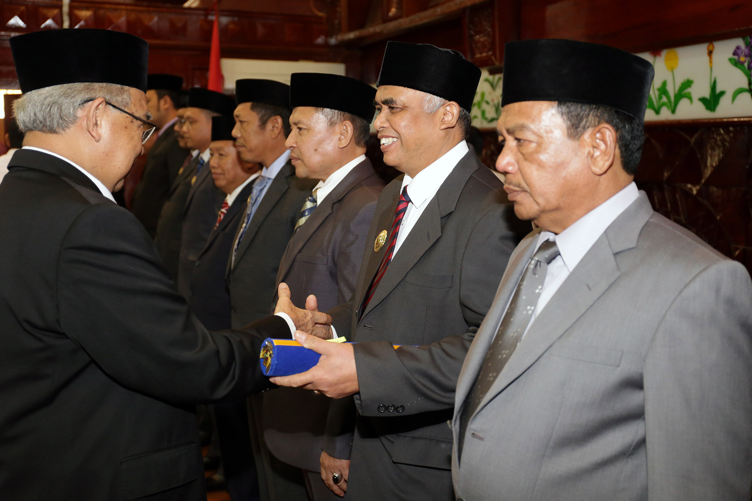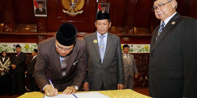 Banda Aceh – Gubernur Aceh, dr.H.Zaini Abdullah mengukuhkan sembilan pelaksana tugas Kabupaten dan Kota Aceh di Anjong Mon Mata, Rabu (26/10).