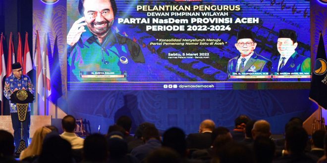 Hal itu diungkapkan oleh Gubernur Aceh, Nova Iriansyah, dalam sambutannya pada pelantikan pengurus Dewan Pimpinan Wilayah (DPW) Partai Nasdem Aceh, di Banda Aceh, Sabtu 5 Maret 2022.
