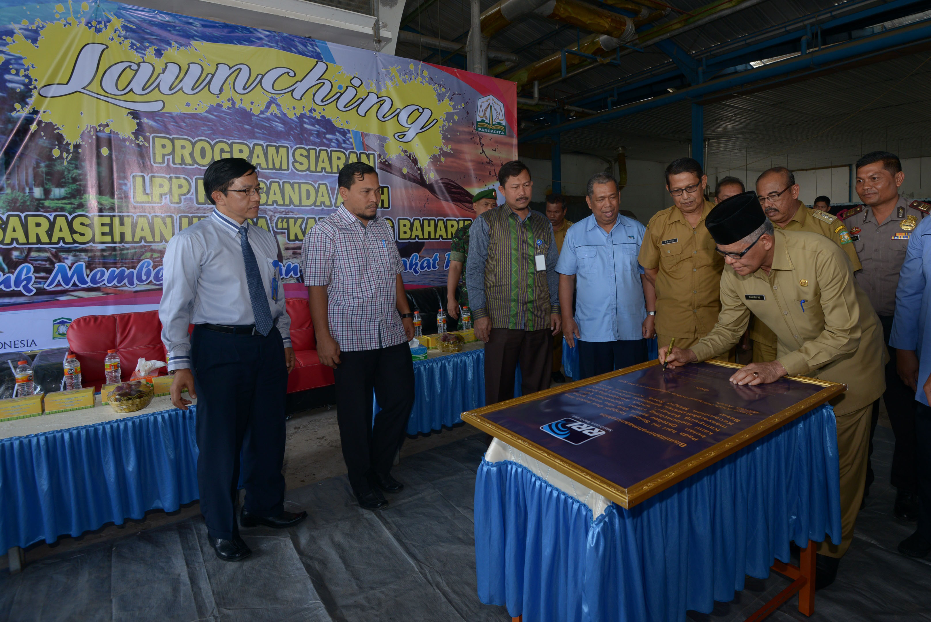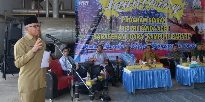 Banda Aceh – Gubernur Aceh, dr. H. Zaini Abdullah yang diwakili Asisten Keistimewaan, Ekonomi dan Pembangunan, Zulkilfi HS melakukan launching program siaran sarasehan udara “kampung bahari” Radio Republik Indonesia Banda Aceh di Gampong Lamreh, Kecamatan Mesjid Raya, Kabupaten Aceh Besar, Selasa (25/10).