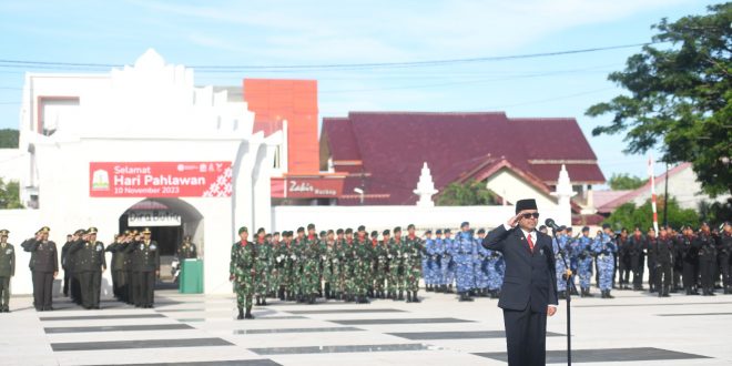 BANDA ACEH – Asisten Pemerintahan, Keistimewaan dan Kesejahteraan Rakyat Aceh, Azwardi AP, M.Si menjadi Inspektur Upacara Ziarah Nasional dalam rangkaian kegiatan Hari Pahlawan ke 78 tahun 2023 di Taman Makam Pahlawan di Banda Aceh, Jum’at, 10/11/2023.