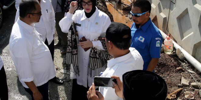 Banda Aceh – Wali Kota Banda Aceh Illiza Sa’aduddin Djamal meninjau perbaikan pipa PDAM Tirta Daroy yang bocor akibat pengerjaan proyek Flyover Simpang Surabaya, Rabu (15/3/2017). Illiza turut didampingi oleh Dirut PDAM Tirta Daroy T Novizal Aiyub dan Kasatker Pelaksanaan Jalan Nasional Wilayah II Aceh Ahmad Faizal serta sejumlah pejabat Pemko Banda Aceh.