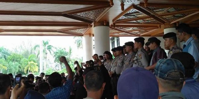 “Bapak gubernur sedang tidak di tempat. Apa yang menjadi tuntutan bapak-bapak semua akan saya sampaikan dan menjadi catatan prioritas kami,” kata Abdul Karim.