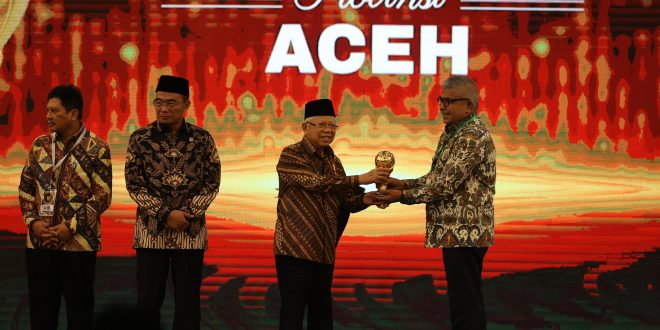 Penghargaan tersebut diserahkan langsung oleh Wakil Presiden Republik Indonesia Prof. Dr. (H.C.) K.H. Ma’ruf Amin dan diterima oleh Penjabat Gubernur Aceh Bustami Hamzah, di The Krakatau Grand Ballroom, Taman Mini Indonesia Indah, Jakarta, Kamis (08/08/2024).