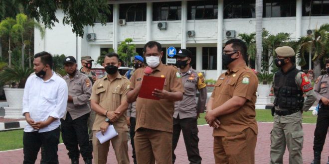 BANDA ACEH – Kepala Bagian (Kabag) Humas dan Media Massa pada Biro Humas dan Protokol Setda Aceh, Dedy Adrian menerima para peserta aksi yang menyampaikan aspirasi di halaman Kantor Gubernur Aceh, Senin (25/10/2021).