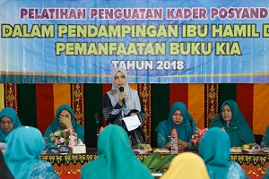 Hal tersebut disampaikan oleh Wakil Ketua TP PKK Aceh Dyah Erti Idawati, dalam sambutannya saat membuka secara resmi Pelatihan Penguatan Kader Posyandu dalam Pendampingan Ibu Hamil dan Penggunaan dan Pemanfaatan Buku KIA, di Aula Dinas Syari’at Islam Kabupaten Aceh Timur, Selasa (13/11/2018).