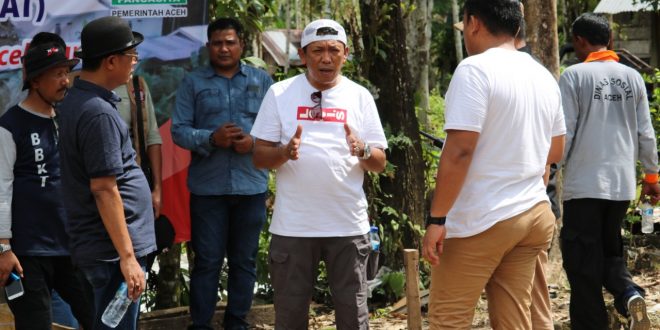 Meulaboh – Menjelang peletakan batu pertama tanda dimulainya pembangunan 39 unit rumah Komunitas Adat Terpencil (KAT) di Desa Sikundo, Kecamatan Pantee Ceureumen, Kabupaten Aceh Barat, Kepala Dinas Sosial Aceh (Kadinsos) Aceh Drs Alhudri MM bersama rombongan meninjau lokasi pembangunan, Minggu (14/7/2019).