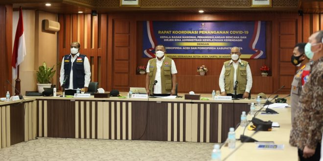 Hal tersebut disampaikan oleh Kepala BNPB, pada Rapat Koordinasi Penanganan Covid-19 bersama Dirjen Bina Administrasi Kewilayahan Kementerian Dalam Negeri Safrizal ZA serta Forkopimda Aceh, di Aula Serbaguna Setda Aceh, dan diikuti secara daring oleh Forkopimda kabupaten/kota via konferensi video, Sabtu (28/8/2021) sore.