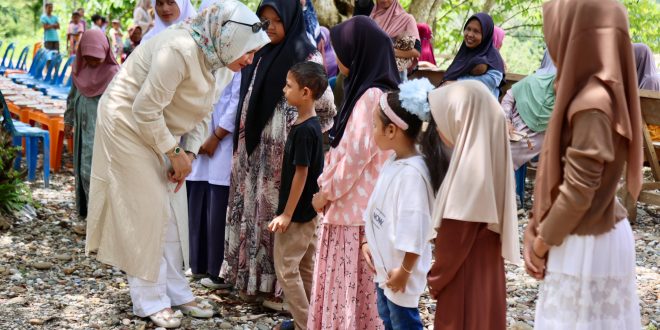 ACEH UTARA – Ketua TP PKK Aceh Marlina Muzakir, menyusuri pedalaman Aceh Utara, tepatnya di objek wisata Pante Bahagia yang berada di Gampong Pante Bahagia Kecamatan Paya Bakong, Selasa (14/10/2025).