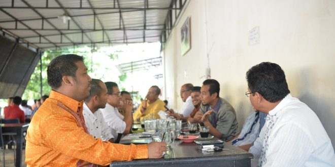 Banda Aceh – Kepala Biro Humas dan Protokol Setda Aceh Mulyadi Nurdin ngopi bareng Juru Bicara Pemerintah Aceh yang baru ditunjuk, Wiratmadinata dan Saifullah Abdul Gani, serta sejumlah wartawan dan masyarakat di salah satu warung kopi di Banda Aceh, Jumat 19 Januari 2018 pagi.