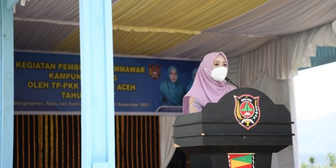 BLANGKEJEREN–Ketua Tim Penggerak Pemberdayaan Kesejahteraan Keluarga (PKK) Aceh, Dyah Erti Idawati, mengapresiasi Kampung Sepang di Kecamatan Blangkejeren, Gayo Lues, yang sukses mendulang berbagai prestasi dari berbagai lembaga. Selain itu, kampung tersebut juga berhasil menjadi salah satu kampung mawaddah warahmah (Gammawar) karena mengimplementasikan 10 program pokok PKK. “Mudah-mudahan dengan adanya reward yang kita berikan kepada kampung Sepang, dapat menjadi motivasi untuk terus menjadi kampung terbaik di Gayo Lues, bahkan Aceh,” kata Dyah saat mengunjungi Kampung Sepang dalam rangka pembinaan dan penilaian kampung mawaddah warahmah, Rabu, (8/9/2021).