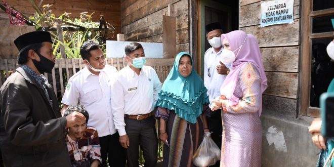 BLANGKEJEREN–Ketua Tim Penggerak PKK Aceh, Dyah Erti Idawati, didampingi Ketua PKK Gayo Lues, Hartati Djahar, mengunjungi kediaman dua penderita Orang Dengan Gangguan Jiwa (ODGJ) asal kampung Uning Gelong, Kecamatan Dabun Gelang, Kabupaten Gayo Lues, Rabu, (8/9/2021).
