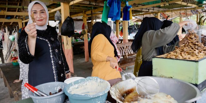 PIDIE – Ketua Tim Penggerak PKK Aceh, Marlina Muzakir, menyambangi usaha rumahan pengolahan pisang “Dapu Sale Cek Dar” di Jalan Medan–Banda Aceh, kawasan Simpang Laweung, Kabupaten Pidie, Kamis (12/6/2025). Kunjungan ini merupakan bentuk dukungan Marlina terhadap pelaku usaha kecil dan menengah (UMKM) di Aceh.