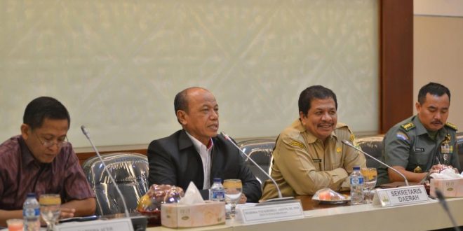 Banda Aceh – Sekretaris Daerah Aceh, Drs. Dermawan, MM menerima kunjungan Sekretariat Jenderal Dewan Ketahanan Nasional bersama rombongan di ruang Potensi Daerah Setda Aceh, Selasa (7/3).