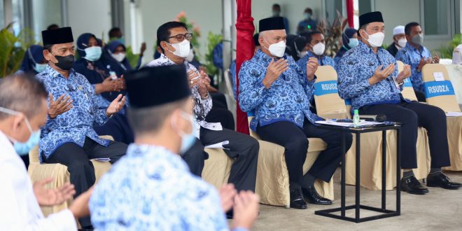 BANDA ACEH – Setelah dua pekan lalu dilakukan pembacaan zikir dan doa di area Pinere RSUDZA, berikut testimoni dari staf Pinere dan penyintas Covid-19, pagi ini Senin (29/11/2021), Sekretaris Daerah (Sekda) Aceh, Taqwallah dan segenap unsur tenaga kesehatan ruang isolasi Pinere Rumah Sakit Umum Daerah Zainoel Abidin (RSUDZA), kembali menggemakan zikir dan doa demi keselamatan pandemi, di area Pinere RSUDZA, Senin, (29/11/2021).