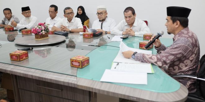 Kepala Biro Keistimewaan Aceh dan Kesejahteraan Rakyat Setda Aceh, Dr. Drs. Yusrizal, M.Si, saat memimpin Rapat Persiapan Acara Munas Pramuka antara Pemerintah Aceh dengan pengurus Kwartir Daerah (Kwarda) Aceh, di Kantor Gubernur Aceh, Banda Aceh, Kamis (26/10/2023).