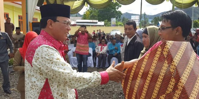 Foto: Bupati Aceh Tengah, Nasaruddin menyalami petani peserta lomba asah terampil 2017