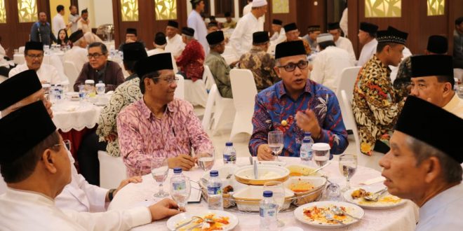 Plt. Gubernur Aceh (berpeci dan batik lengan panjang biru) saat hadir pada acara buka puasa bersama yang diadakan oleh Pengurus Pusat (PP), Taman Iskandar Muda (TIM), Rabu, 8 Mei 2019 tadi malam. (Foto: BPPA/ Saifullah)