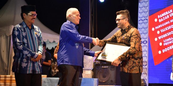 BANDA ACEH – Baitul Mal Aceh (BMA) memperoleh penghargaan sebagai stan terbaik III pada ajang Aceh UMKM Expo 2019. Penghargaan tersebut diterima langsung Kepala Sekretariat Baitul Mal Aceh, Rahmad Raden pada penutupan Aceh UMKM Expo 2019, Selasa (26/11/2019) malam.