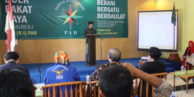 Banda Aceh – Partai Atjeh Hijau (PAH) menggelar “Duek Pakat Raya” atau kongres perdana di Banda Aceh. Mengusung tema Tameusahoe, Tapeusaboh Droe, TapeuPAH Nanggroe Meudeilat Bansa, kongres partai politik lokal berhaluan hijau yang dideklarasikan pada 5 Juni 2013 ini akan berlangsung hingga Senin (22/5) mendatang.