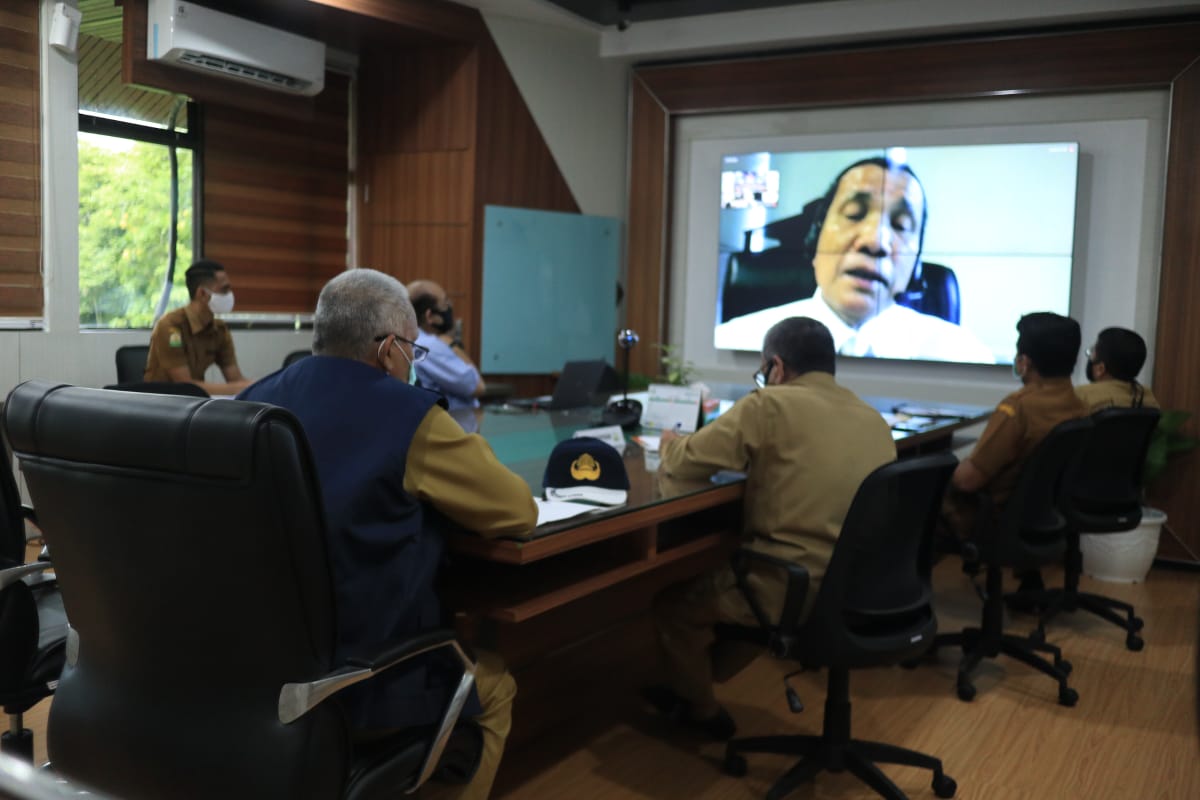 Hadir dalam rapat video conferensi itu, Sekda Aceh dr. Taqwallah dan Kepala Inspektorat Aceh, Zulkfly. []