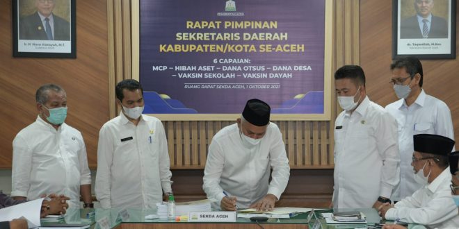 Penandatanganan itu dilakukan oleh Sekretaris Daerah (Sekda) Aceh, Taqwallah, dan sejumlah Sekda Kabupaten/Kota terkait, di Kantor Gubernur Aceh, Jumat, (1/10/2021).