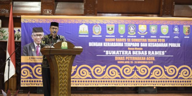 Hal tersebut disampaikan oleh Asisten Administrasi Umum Sekda Aceh, Bukhari, saat membacakan sambutan tertulis Pelaksana Tugas Gubernur Aceh Nova Iriansyah, pada pembukaan Rapat Koordinasi Penanganan Rabies se-Sumatera, di Anjong Mon Mata, Selasa (26/7/2019).
