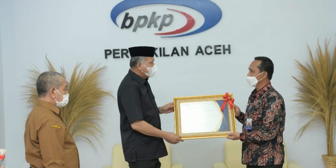BANDA ACEH – Pemerintah Aceh melalui Inspektorat Aceh mendapatkan piagam penghargaan Kapabilitas Aparat Pengawasan Intern Pemerintah (APIP) Level 3 atau integrated dari BPKP. Penghargaan tersebut diterima langsung oleh Gubernur Aceh, Nova Iriansyah, dari Kepala BPKP Aceh, Indra Khaira Jaya, di Kantor BPKP Aceh, Selasa, (18/1/2022).