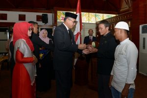 Banda Aceh — Memperingati 73 tahun kemerdekaan Republik Indonesia, Pemerintah Aceh menggelar silaturahmi dengan para veteran, keluarga dan ahli waris para pahlawan, di Anjong Mon Mata Banda Aceh, Jumat 17 Agustus 2018. Hadir dalam silaturrahmi itu Forkopimda Aceh, para Kepala SKPA dan Anggota DPR Aceh.