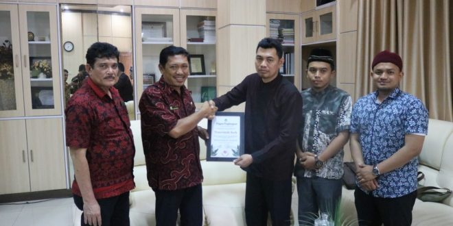 BANDA ACEH- Sebanyak tiga orang mahasiswa Aceh di Mesir yang mewakili Keluarga Besar Mahasiswa Aceh (KMA) di Kairo, Mesir menemui Kepala Dinas Sosial Aceh Alhudri di ruang kerjanya, Kamis (25/4/2019).