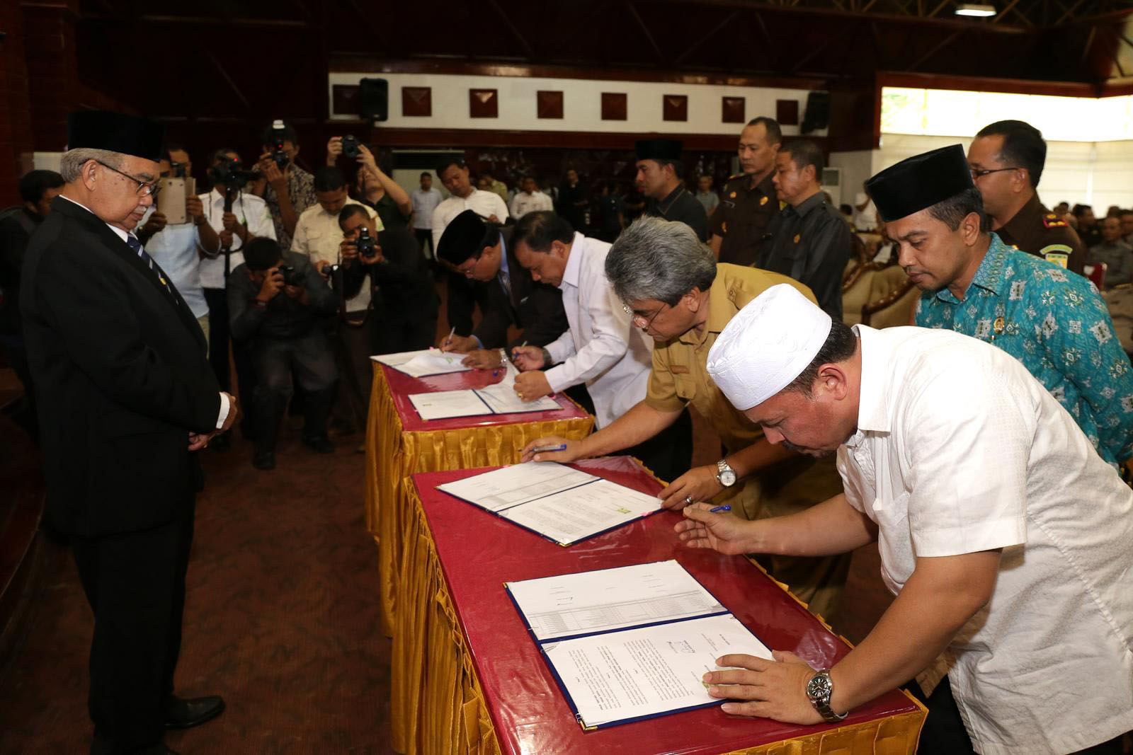 Banda Aceh – Gubernur Aceh, dr. H. Zaini Abdullah menerima Dokumen peralihan Personel, Sarana dan Prasarana serta Dokumen (P2D) yang diserahkan Bupati/Walikota se – Aceh di Anjong Mon Mata, Rabu (26/10).