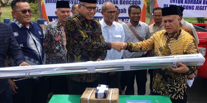 Takengon 13-07-2019 – Pemerintah Aceh menyerahkan bantuan bahan baku bangunan untuk masyarakat terdampak bencana hujan es di Kabupaten Aceh Tengah. Penyerahan bantuan tersebut dilakukan oleh Plt. Ir. Nova Iriansyah, MT dan diterima langsung oleh Bupati Aceh Tengah, Drs. Shabela Abubakar, Sabtu 13 Juli 2019 kemudian dilanjutkan penandatanganan berita acara serahterima barang antara Kepala Badan Penanggulangan Bencana Aceh, H.T Ahmad Dadek, SH dengan Kepala Badan Penanggulangan Bencana Daerah Aceh Tengah, Thamrin Elashri, SE.
