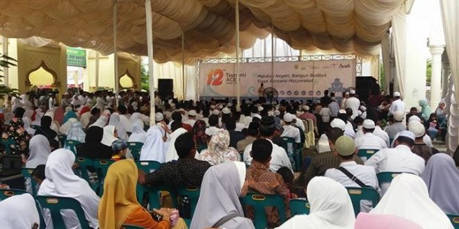 Banda Aceh – Ribuan warga Banda Aceh dan sekitarnya, Senin (26/12/2016) berbondong-bondong hadir di Masjid Baiturrahim Ulee Lheue, Kecamatan Meuraxa Banda Aceh dalam rangka menghadiri peringatan 12 tahun tsunami. Ikut hadir Plt Gubernur Aceh Soedarmo, Wali Nanggroe Malek Mahmud, Kadisbudpar Aceh Reza Fahlevi dan sejumlah pejabat lingkungan Pemprov Aceh dan Pemko Banda Aceh lainnya.