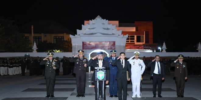 Temaram cahaya bulan dan dua obor utama yang menerangi, menghadirkan suasana khidmat pada Apel Kehormatan dan Renungan Suci tahun ini. []
