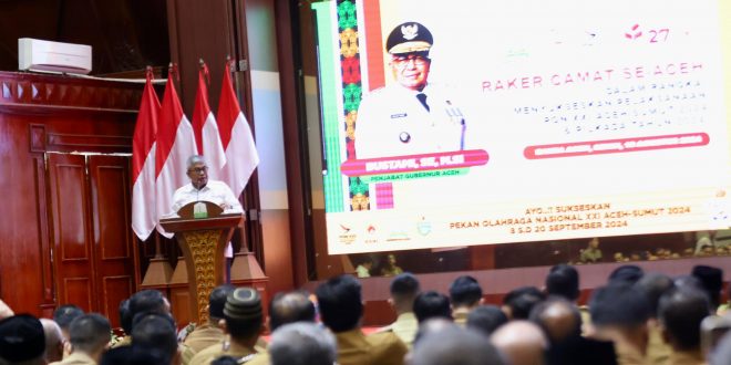 Hal tersebut disampaikan oleh Penjabat Gubernur Aceh Bustami Hamzah, dalam sambutannya pada Rapat Kerja Camat se-Aceh dalam rangka menyukseskan Pekan Olahraga Nasional (PON) XXI Tahun 2024 dan pelaksanaan Pemilihan Kepala Daerah Serentak Tahun 2024, di Anjong Mon Mata komplek Meuligoe Gubernur Aceh, Senin (19/8/2024).