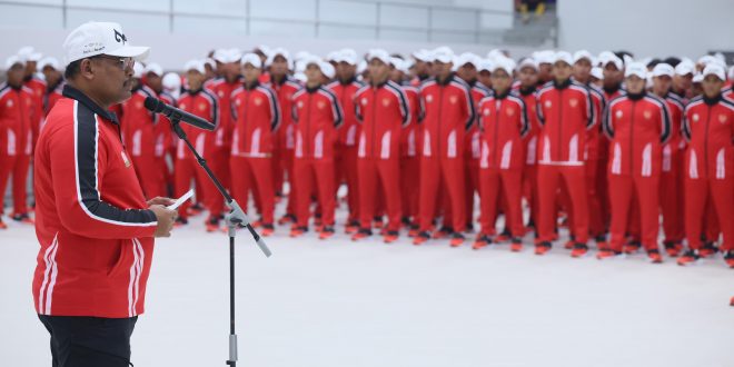 Banda Aceh – Penjabat Gubernur Aceh, Dr. H. Safrizal ZA, M.Si, melepas para atlet kontingen Aceh yang akan berlaga pada ajang Pekan Olahraga Nasional (PON) Aceh-Sumut XXI tahun 2024 di GOR KONI Aceh, Rabu (28/08) sore. Dalam kegiatan itu, ia mengungkapkan harapan dan dukungan penuh untuk seluruh atlet yang akan berpartisipasi.