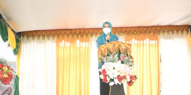 MEUREUDU – Ketua Tim Penggerak PKK Aceh Dyah Erti Idawati beserta jajaran Tim Pembina TP PKK Aceh, memberikan arahan dan bimbingan kepada kader PKK Gampong Grong- Grong, Kecamatan Meureudu, Kabupaten Pidie Jaya, Kamis (15/7/2021).