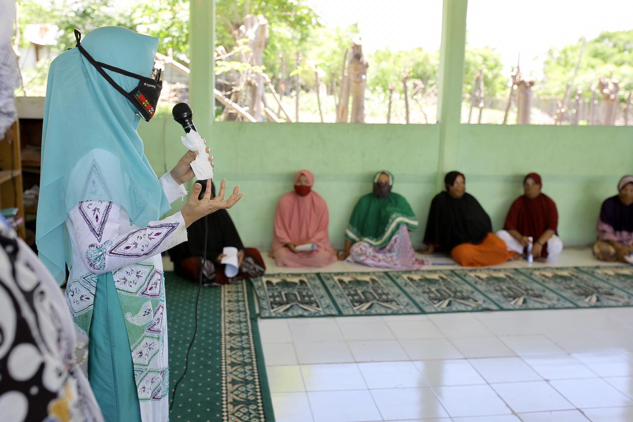 Usai menyerahkan bantuan pada masyarakat, Dyah kemudian mensosialisasikan pencegahan covid-19 kepada masyarakat, khususnya kaum ibu. “Tolong bilang ke bapak di rumah untuk menjauhi keramaian,” kata dia.
