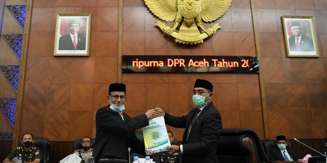 Banda Aceh – Pelaksana Tugas Gubernur Aceh Nova Iriansyah menyampaikan Rancangan Kebijakan Umum Anggaran (KUA) serta Prioritas dan Plafon Anggaran Sementara (PPAS) Tahun Anggaran 2021 ke DPRA dalam rapat paripurna, Jumat, 24 Juli 2020.