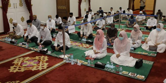 Banda Aceh – Pelaksana Tugas Gubernur Aceh Nova Iriansyah, bersama Sekretaris Daerah Aceh Taqwallah dan seluruh Kepala Satuan Kerja Perangkat Aceh, menggelar do’a bersama secara daring via video conference, untuk kesembuhan pasien Corona Virus Disease 2019 (Covid-19) dan seluruh pasien lainnya di RSUDZA, Rabu (22/7/2020) malam.