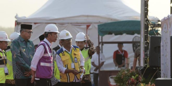 Presiden RI, Joko Widodo, didampingi Plt Gubernur Aceh Nova Iriansyah, meninjau progres jalan Tol Sibanceh, di kawasan Blang Bintang Aceh Besar, Jum’at (21/02/2020).