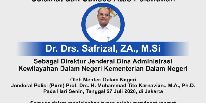 Jakarta – Dr. Drs. Safrizal Z.A., M.Si., dilantik sebagai Direktur Jenderal Bina Administrasi Kewilayahan (Bina Adwil) Kementerian Dalam Negeri Republik Indonesia. Putra kelahiran Banda Aceh itu dilantik oleh Menteri Dalam Negeri, Muhammad Tito Karnavian, Senin 27/7. Atas prestasi itu, pemerintah Aceh menyampaikan selamat dan memberikan apresiasi.