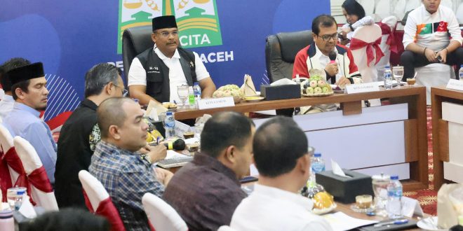 BANDA ACEH – Penjabat Gubernur Aceh Safrizal, memimpin Rapat perdana dengan para Kepala Satuan Kerja Perangkat Aceh, membahas perkembangan persiapan Pekan Olahraga Nasional (PON) XXI 2024 Aceh-Sumut, di restoran Meuligoe Gubernur Aceh Sabtu (24/8/2024) malam.