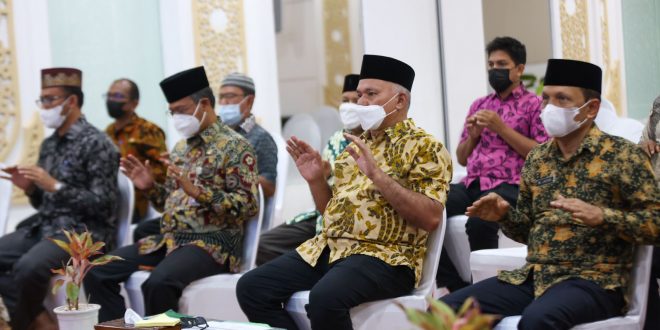 BANDA ACEH – Sekretaris Daerah (Sekda) Aceh, Taqwallah, menyapa para Aparatur Sipil Negara (ASN) Pemerintah Aceh melalui saluran Zoom dalam kegiatan zikir pagi rutin, Kamis 14 Juli 2022.
