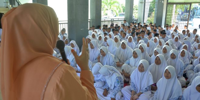 Banda Aceh – Rabu (7/2/2018), Dharma Wanita Persatuan (DWP) Kota Banda Aceh kembali melanjutkan program Saweu Sikula (Kunjungi Sekolah). Setelah minggu lalu menyambangi SMPN 9 Peunayong, kali ini organisasi istri PNS Kota yang dipimpin Ir Buraida Bahagia mengunjungi SMPN 16, Peuniti.