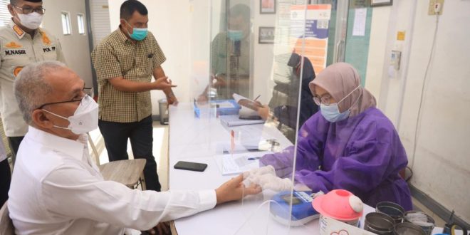 Banda Aceh – Sekretaris Daerah Aceh Taqwallah, melakukan donor darah rutin di UDD Donor Darah PMI Kota Banda Aceh, Rabu (9/6/2021).