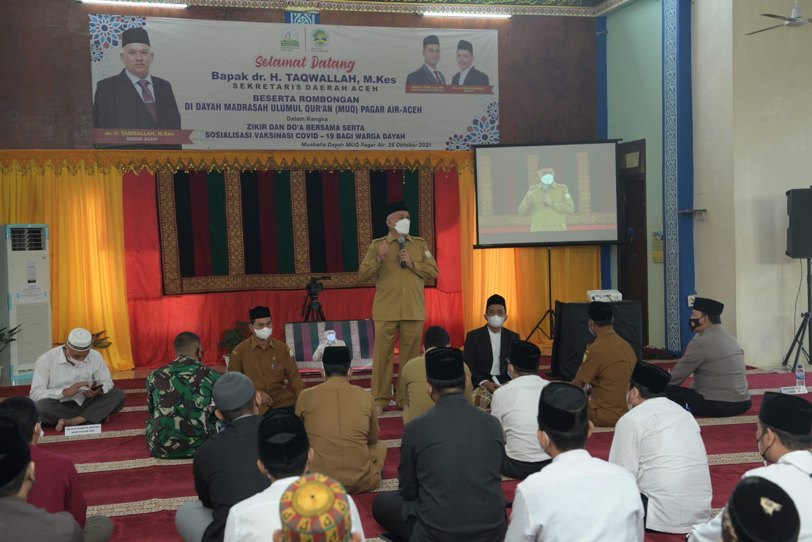 Sekda Aceh Ikut Zikir dan Sosialisasi Vaksinasi di Dayah MUQ Pagar Air