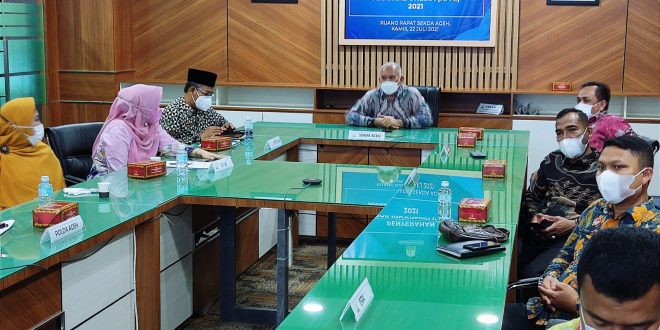 BANDA ACEH – Sekretaris Daerah (Sekda) Aceh, Taqwallah, mengikuti secara virtual penganugerahan Komisi Perlindungan Anak Indonesia (KPAI) Tahun 2021 dari ruang rapat kerjanya di Kantor Gubernur Aceh, Kamis, (22/7/2021).