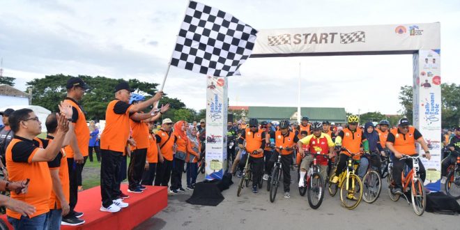 Banda Aceh – Sekretaris Daerah Aceh, dr. Taqwallah, M.Kes melepas ribuan peserta sepeda santai Rally Tsunami Pole di Lapangan Blang Padang, Banda Aceh, Minggu, (1/12/2019).