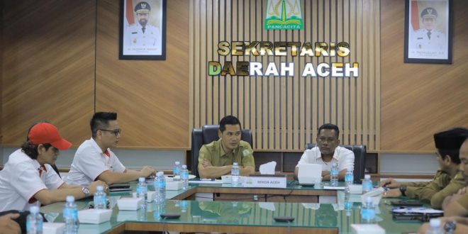Banda Aceh — Pengurus Komite Olahraga Nasional Indonesia (KONI) Aceh menggelar pertemuan dengan Sekretaris Daerah (Sekda) Aceh, M Nasir, membahas program dan kebutuhan anggaran KONI Aceh tahun 2026. Pertemuan berlangsung di Kantor Gubernur Aceh, Selasa (3/2/2026).